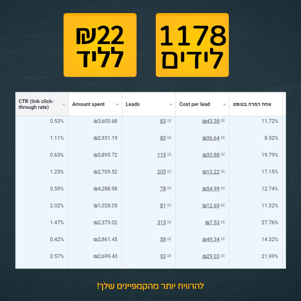 אז אם אתם מרגישים שתוצאות הקמפיינים שלכם במגמת ירידה או שאתם רוצים לפרוץ לשלב הבא ולגדול – לחצו על הכפתור וגלו איך אני עושה את זה 🙂